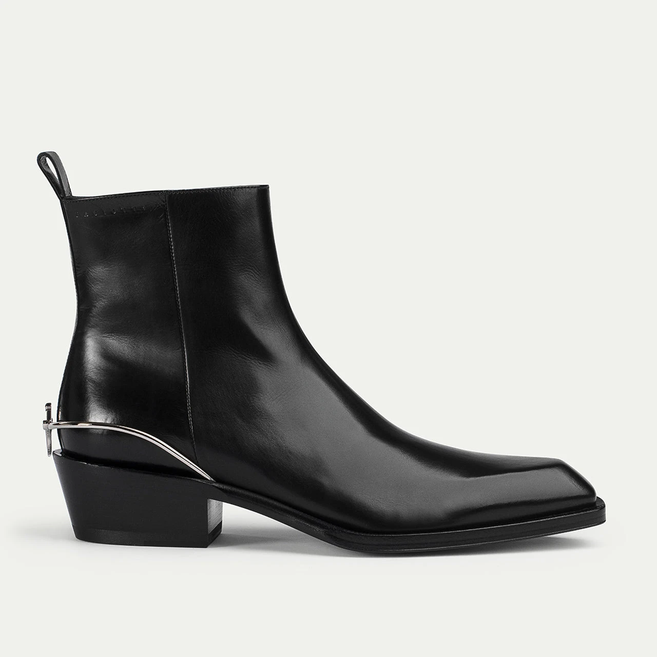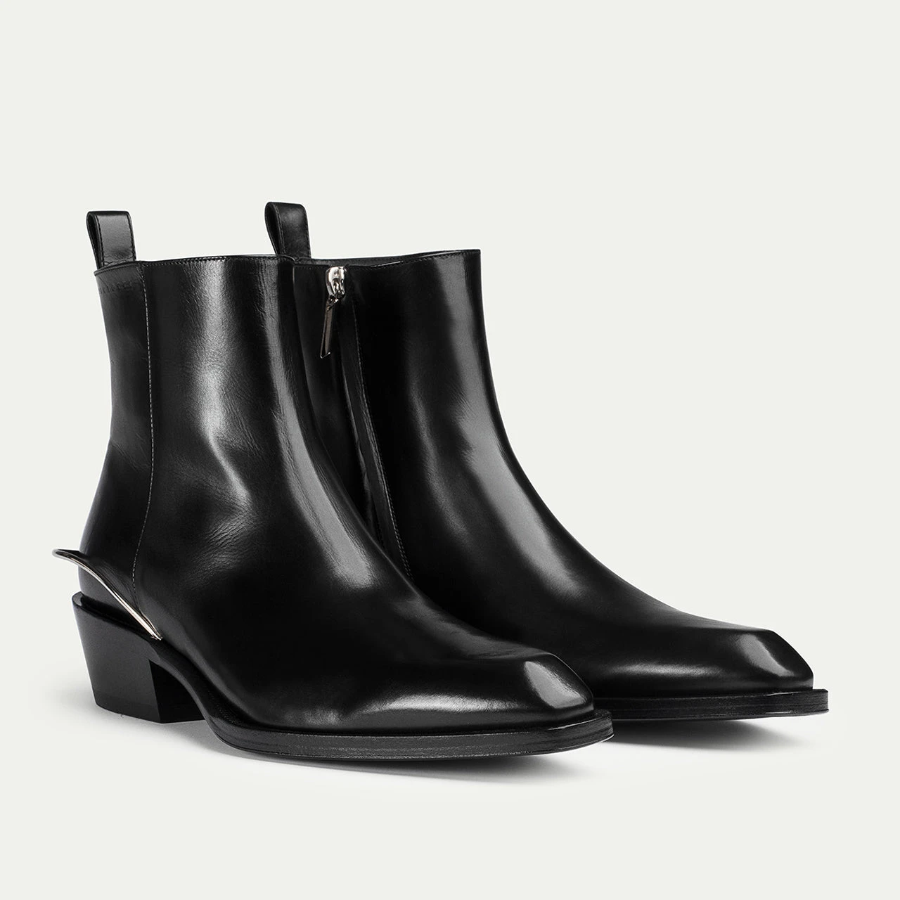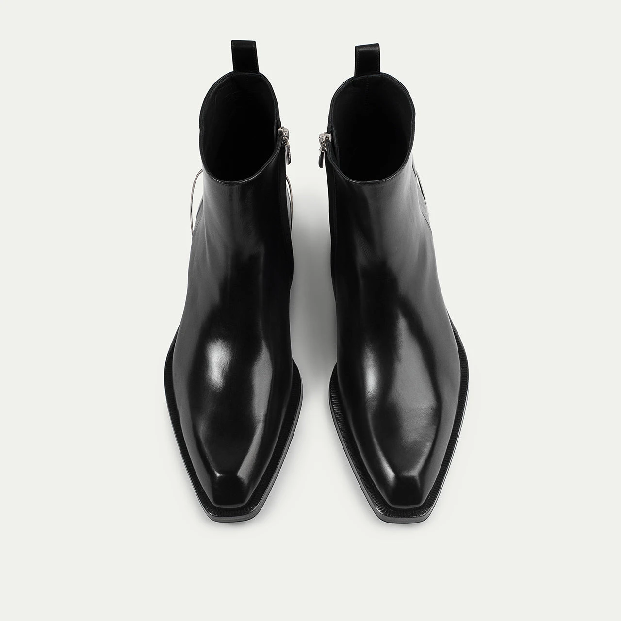 dagger on the metal spur behind the timeless black leather PACIOTTI Texan boot