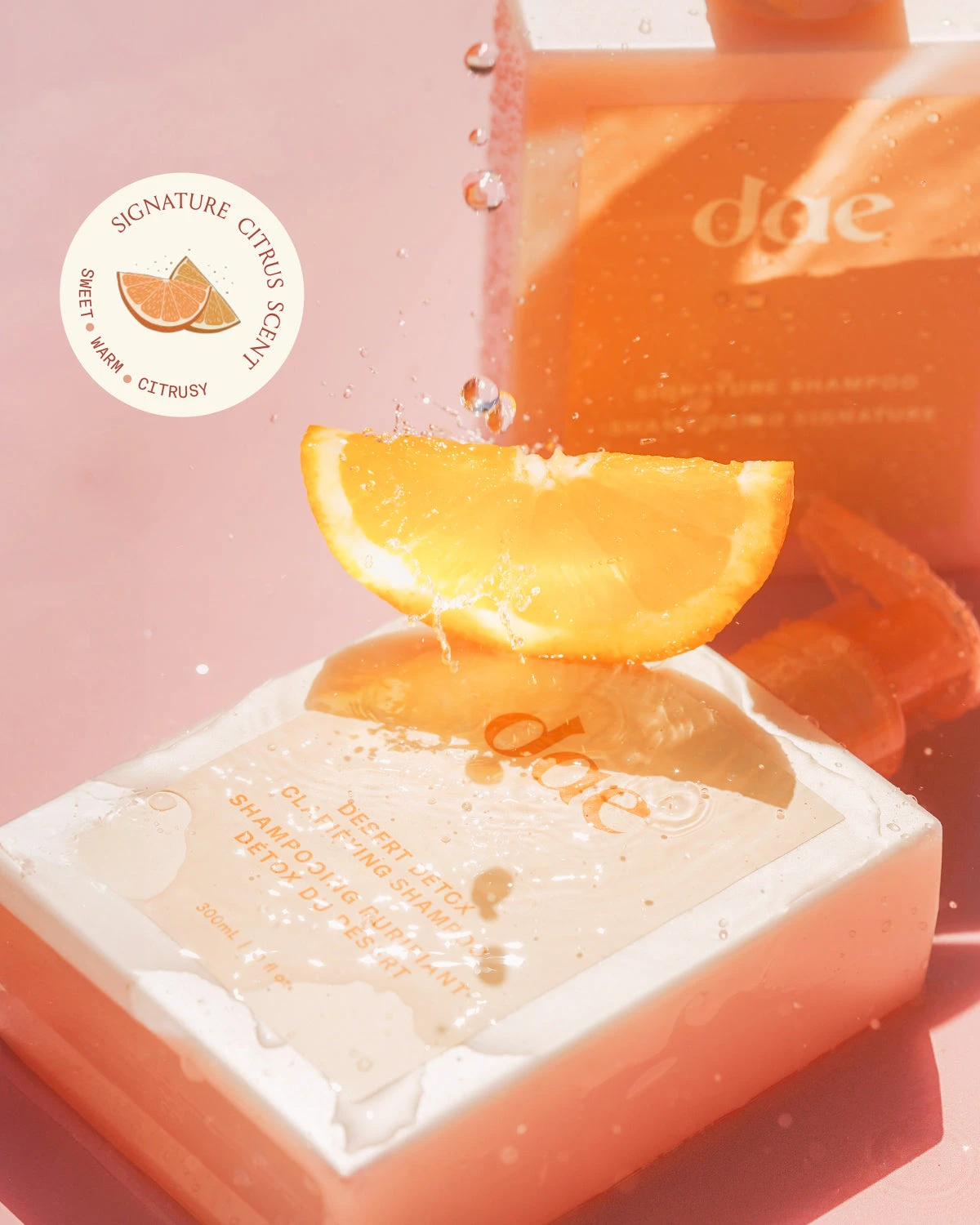This clarifying, non-stripping shampoo cleanses away excess oil, impurities, and product buildup. Enriched with purifying desert botanicals, the rich lather leaves hair feeling extra clean and detoxified. Envelop your hair in our sweet, warm Signature Citrus Scent that makes wash dae dreamy.