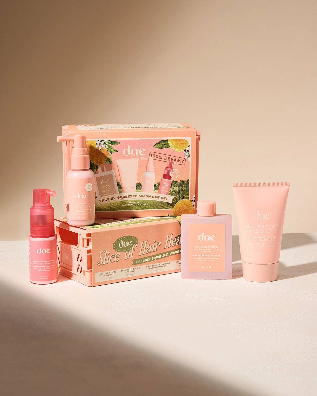 Give your hair a new zest for life with these daely hair care essentials. These minis are clean and bursting with our sweet and juicy Signature Citrus Scent for soft, shiny, bouncy hair everydae.