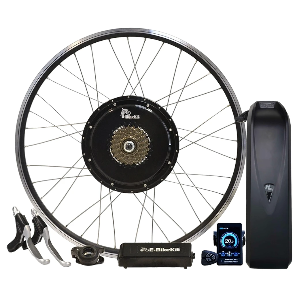 This premium electric bike conversion kit system is for riders that require the increased durability of a direct-drive motor for heavier loads and the long term reliability of a lithium battery. The direct-drive hub motor used in this conversion kit system is for heavier applications and a MUST for any total load (bike+rider+cargo) of 300 lbs. or more. This system pairs the heavy-duty motor with a 48v battery pack with a 20 mph top speed for increased torque.